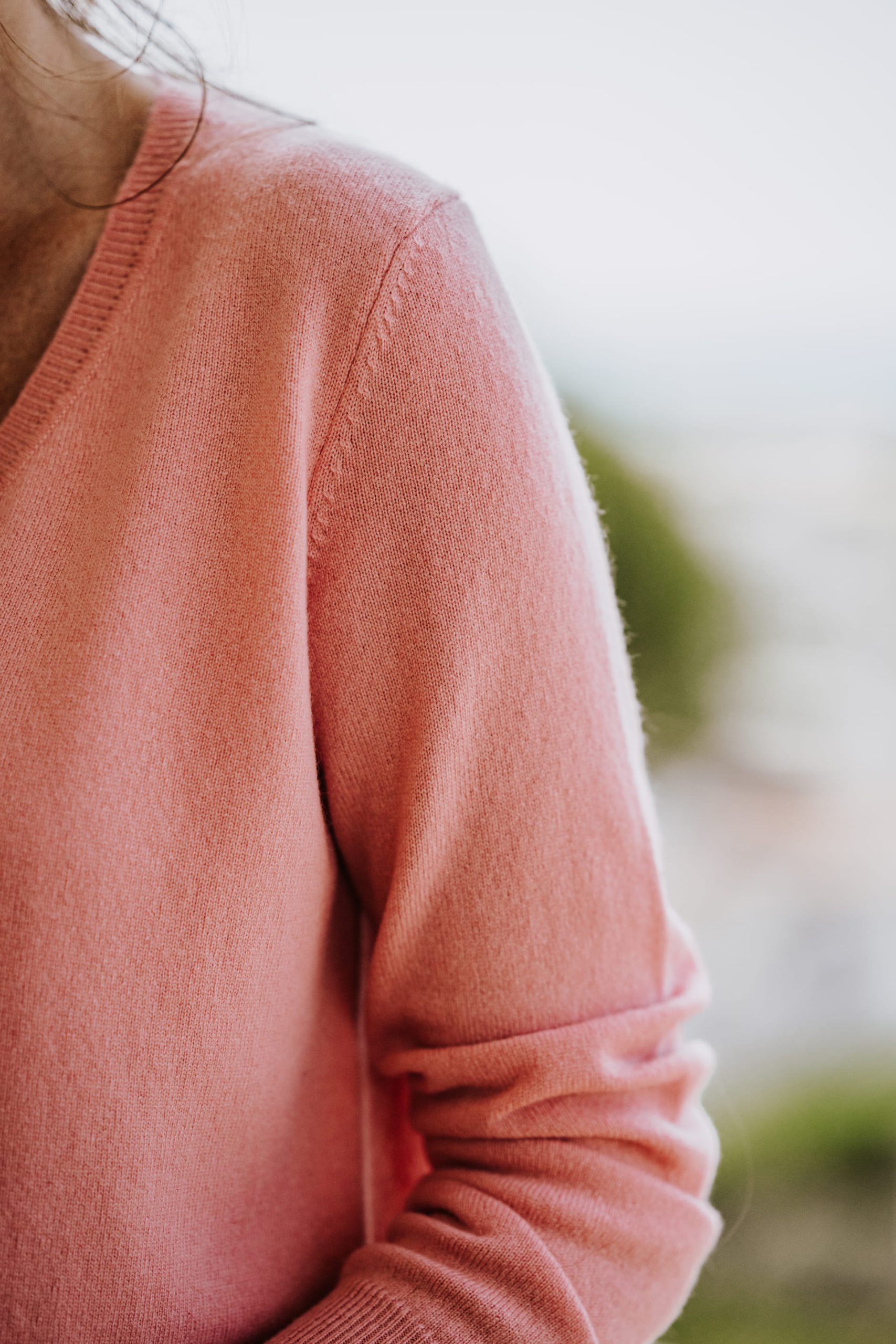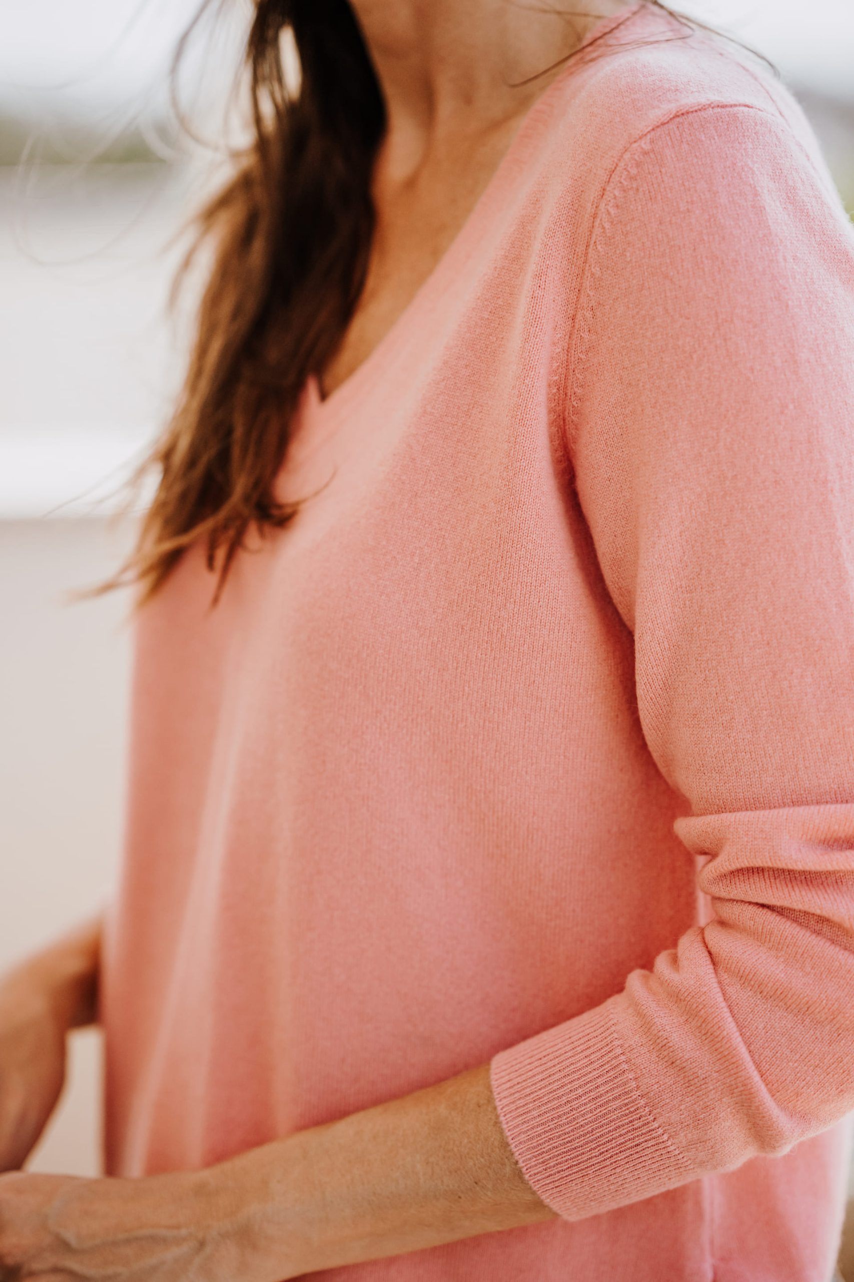 Cashmere V-neck Longsleeve sweater with side slit.